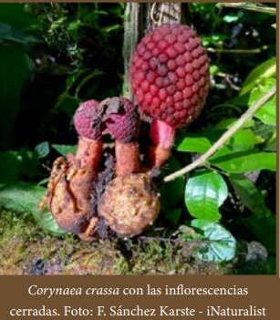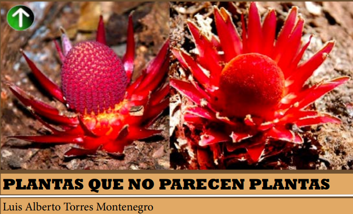 pensamos en una planta, todos recordamos la típica imagen que nos mostraban en el colegio de una planta con hojas (por lo general siempre verdes), tallo (marrones o verdes), raíces, flores y frutos. Pero también existen plantas que han modificado todo o parte de estas estructuras y que a simple vista pueden confundir a cualquier persona que no esté familiarizada con estos grupos. Aquí les voy a presentar dos familias comunes en el neotrópico, que fácilmente podrían ser confundidas con algún otro ser vivo terrestre o “extraterrestre”, he tratado en lo posible de no hacer una descripción técnica, sino más bien una interpretación de a lo que se asemeja, basándome solamente en su apariencia. La primera familia es Balanophoraceae, compuesta por hierbas terrestres pequeñas (entre 5 a 15 cm de altura promedio), que carecen de hojas y de un tallo verdadero, por lo cual no realizan fotosíntesis y se alimentan parasitando otras plantas a través de las raíces, el cuerpo principal está enterrado. No entraré en detalles morfológicos, pero les diré que se asemejan a hongos o a algún tipo de flor o fruto seco ya maduro sobre el suelo. La familia posee siete géneros en el neotrópico: Corynaea, Helosis, Langsdorffia, Lathrophytum, Lophophytum, Ombrophytum y Scybalium (Hansen 1980). Corynaea Hook.f., es un género monotípico (solo posee una especie), su apariencia se asemeja a un grupo de hongos de color marrón, amarillento o rojizo. Su única especie se llama Corynaea crassa Hook.f. y habita los bosques montanos entre los 1 000 y 3 000 m s.n.m. desde el sur de México en América Central hasta