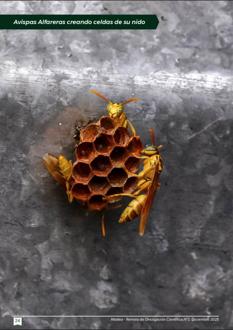En la naturaleza existen diferentes grupos de avispas, tal vez las más conocidas sean las “de papel” y las “alfareras”. Las primeras forman un único panal expuesto y dividido en decenas o cientos de celdas y su construcción es la mezcla de fibras vegetales masticadas y cohesionadas con saliva. Las avispas alfareras tienen una dinámica diferente; son capaces de probar la textura del suelo en pequeñas porciones con sus mandíbulas y patas delanteras. Esto lo hacen con el fin de probar si los materiales son moldeables y seleccionarlos para su propósito de anidación; luego se dirigen a una fuente de agua cercana y recolectan una pequeña cantidad; la transportan hasta donde está el suelo seleccionado para amasar una pequeña porción, formando una bolita de barro. La bolita de barro es llevada finalmente al nido para proceder con la construcción. Estudios reportan que las alfareras realizan su obra golpeteando con sus patas y mandíbulas, provocando una vibración que aumenta la densidad y adhesión de los materiales. Es de esta forma como compacta y endurece las bolitas de barro, como si se tratara de una pared casera de ladrillos y cemento. Curiosamente, las investigaciones indican que la calidad del suelo de sus nidos está relacionada con su éxito reproductivo y, obviamente,